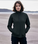 Designed for the fairway or the corporate hallway, this cotton-rich 1/4-zip adds a lightweight layer of warmth with enough stretch for easy movement. 6.1-ounce, 70/26/4 cotton/poly/spandex jersey Cadet collar Covered zipper placket Self-fabric cuffs Open hem Tag-free label
