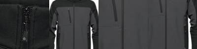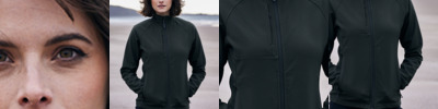 Two layer soft shell. 96% recycled polyester/4% elastane outer. Micro fleece backed. H2OShield DWR finish. Showerproof and wind resistant. Full length zip with chin guard and inner zip guard. Right chest pocket. Two front zip pockets. Bound elasticated cuffs. Drawcord hem. Branding on zip pulls and lower side seams.