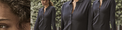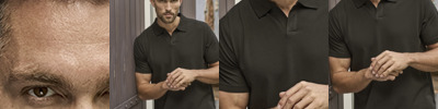 95% organic ringspun combed cotton/5% elastane mini piqué. Double pre-shrunk.Tailored fit.Flat knit collar with elastane.Taped neck.Five button placket with self colour buttons.Side vents.Self fabric cuffs with elastane.Twin needle hem.