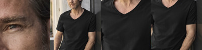 100% organic combed ringspun cotton. Enzyme washed. Double pre-shrunk. Tailored fit. Ribbed V neck. Taped neck and shoulders. Side seams. Twin needle stitching.