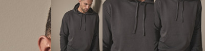 70% organic cotton/30% polyester. Drop shoulder style.Brushed back fleece.Double fabric hood with self colour drawcord.Taped neck.Front pouch pocket.Elastane cuffs and hem.Tear out label (in transition to be tag free).60°C wash.