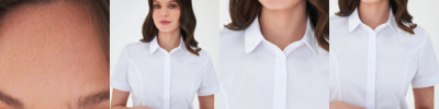 57% polyester/39% cotton/4% elastane. Easy care stretch fabric.Semi-fitted.Rounded collar.Concealed placket.Single yoke.Sleeve vent.Princess seams.Curved hem.