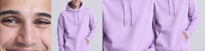 80% organic cotton/20% recycled polyester.* Soft cotton faced fabric.Brushed back fleece.Drop shoulder style.Double fabric hood with self colour drawcord.Front pouch pocket.Ribbed cuffs and hem.Twin needle stitching.Tear out label.