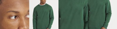 80% organic cotton/20% recycled polyester.* Soft cotton faced fabric.Brushed back fleece.Drop shoulder style.Fashion fit.Ribbed collar, cuffs and hem.Taped neck.Twin needle stitching.Tear out label.