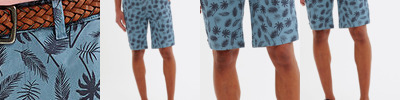 Two swing pockets and two back jet pockets. Zip fly and button fastening to the front. Soft finish fabric. Belt loops. Palm print detailing. Shorts can be worn rolled up.