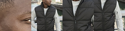 300T polyester outer. 380T polyester lining.DuPont™ padding.Tailored fit.Full length SBS zip with chin guard and inner zip guard.Stand up collar.Bound elasticated armholes.Elastic side panels.Inner pocket.Two concealed front zip pockets.Open hem.Branded zip pulls.