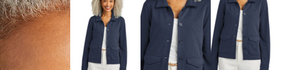 A structured double-knit style with a luxuriously soft hand, this versatile woman's jacket adds a touch of utilitarian flair with a full button-front closure. The jacket can be cinched with a hidden waist drawcord for a more form-fitting look. 8-ounce, 76/22/2 polyester/rayon/spandex double-knit Faux horn buttons with Brooks Brothers logo Adjustable buttoned cuffs Hidden button-flap front pockets