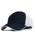 Contrasting nylon mesh back; Performance Pearl Nylon UPF 50+; Moisture-wicking sweatband; Prostitching; Adjustable hook and loop closure;