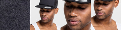 80% acrylic/20% wool. 6 panel. Mid profile. Stitched ventilation eyelets. Structured front panels. Flat cork peak. Plastic snapback size adjuster. Authentic visor sticker.