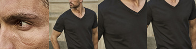 100% ringspun combed cotton. Double pre-shrunk.Slim fit.Ribbed collar with elastane.Taped neck and shoulders.Side seams.Twin needle stitching.60°C wash.