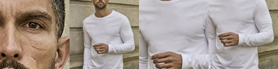 100% ringspun combed cotton. Double pre-shrunk.Slim fit.Narrow ribbed collar with elastane.Taped neck and shoulders.Self fabric cuffs with elastane.Twin needle stitching.60°C wash.