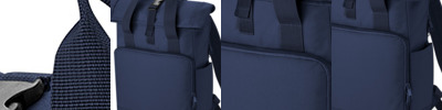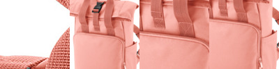 100% recycled 300D polyester. Webbing carry handles.Adjustable shoulder straps.Roll-top closure.Padded back panel.Front zip pocket.Internal zip pocket.Water bottle pocket.Tear out label.Capacity 9 litres.