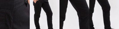 67% polyester/30% cotton/3% Lycra®. Narrow leg with flat front.Part elasticated waistband with belt loops.Zip fly.Two side pockets.Media pocket.Rear patch pocket.Domestic wash 65°C.