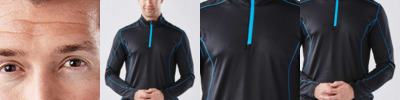 92% polyester/8% spandex single jersey. H2X-DRY® moisture management fabric.Unlined.Contrast 1/4 zip with chin guard.Open cuffs and hem.Contrast cover stitching.Branding on right hem.