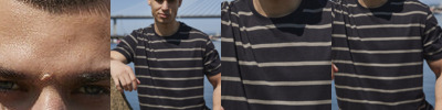 Heavyweight striped T. Relaxed fit. Plain stretch rib neck. Single Jersey back neck tape. Twin-needle stitching on sleeves and hem. Tag-free for easy rebranding.