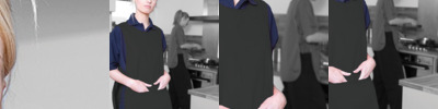 65% polyester/35% cotton. Large patch pocket.Adjustable stud side tabs.Length 74cm.85°C wash.