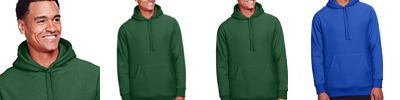 11 oz.yd2 / 373 gsm, 70% cotton, 30% polyester crossweave fleece; Safety Yellow is 50% cotton, 50% polyester; Water-repellent; Three-piece self-lined hood; Dyed-to-match flat braided drawcord at hood; Front pouch with media pocket; Matching knit trim at cuff and hem; Locker loop main label; Team fit; Easy care;