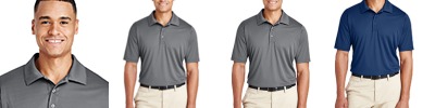 3.5 oz/yd2 / 130 gsm, 100% polyester interlock; Moisture-wicking and UV protection performance; Cationic dyes for superior brightness and color fastness; Three-button placket; Integrated collar stays; Dyed-to-match buttons; Tear away label;
