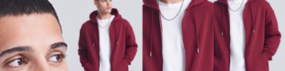 80% organic cotton/20% recycled polyester.* Soft cotton faced fabric.Brushed back fleece.Drop shoulder style.Double fabric hood with self colour drawcord.Full length metal YKK zip.Front pouch pockets.Ribbed cuffs and hem.Twin needle stitching.Tear out label.