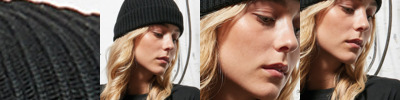 100% Recycled polyester fabric. Folded brim. Fisherman beanie.