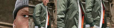 Lined nylon bomber jacket for men with a flashy contrasting lining in orange. Wide ribbed hems and sleeves, a pocket on the sleeve and the turned-down collar provide the classic look and the right fit. The jacket is perfect for refining, thanks to the zippers on the lining hem it can be easily printed.