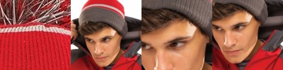- Two-color pom pom accent with reflective yarns