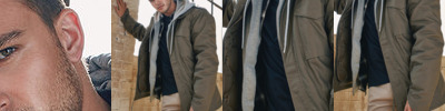 Classic field jacket, water-repellent, durable material, removable lining, hook and loop fastening at the end of the sleeve, adjustable waist, hidden hood.