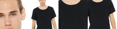 3.5 oz., 100% combed and ring-spun liquid cotton; 40 singles; Optimal stretch and recovery; Fashion fit; Side seams; Raw-edge double-collar neck; Loose fit; Tear-away label; Made in a W.R.A.P. certified factory;