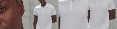 6 oz./yd2 / 210 gsm, 100% polyester pique; ChromaSoft™ technology combines the colorfastness of cationic dyes with soft cotton-feel performance; Moisture-wicking and antimicrobial performance; Three-button placket with self fabric collar and integrated collar stays; Dyed-to-match buttons; Side vents; Tear away label;