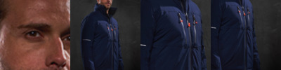 Warm-backed woven softshell XPT waterproof and breathable 3 layer membrane fabric. Fully printable outer fabric, with wind resistant inner membrane. Detachable softshell fabric hood, adjustable shock cord at face and cuff adjusters. 2 zipped lower pockets and 1 zipped chest pocket. .