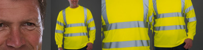 100% polyester. Conforms to EN ISO 20471: 2013 + A1: 2016 class 3.RIS-3279-TOM (orange only).Soft ribbed knit collar and cuffs.Taped neck.Two reflective bands around the body, sleeves and one over each shoulder.Twin needle hem.
