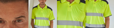 100% polyester. Conforms to EN ISO 20471: 2013 + A1: 2016 class 2.RIS-3279-TOM (orange only).Aircool breathable and quick drying fabric.Flat knit collar and cuffs with contrast tipping.Three button placket.Contrast shoulder and lower body panels.Two reflective bands around the body.Side vents with reinforced stitching.Tag free.
