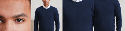 55% cotton/45% acrylic. Fine knit.Easy care.Contemporary stylish fit.Ribbed collar, cuffs and hem.Machine washable.