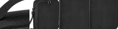 300D polyester. Brushed polyester lining.Protective foam construction.Compact and lightweight.Grab handle.Detachable adjustable shoulder strap.Main zip compartment.Padded flexible interior divider.Rear slip pocket.Tear out label.Capacity 7.5 litres.