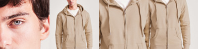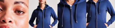 80% organic cotton/20% recycled polyester.* Soft cotton faced fabric.Brushed back fleece.Drop shoulder style.Slim fit.Double fabric hood with waffle knit lining.Self colour drawcord with nickel free eyelets and drawcord tips.Full length metal zip.Front pouch pockets.2x1 ribbed cuffs and hem.Twin needle stitching.Unbranded size label at neckline.