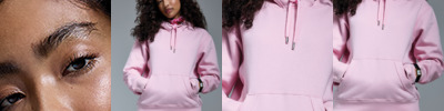 80% organic cotton/20% recycled polyester.* Soft cotton faced fabric.Brushed back fleece.Drop shoulder style.Slim fit.Double fabric hood with waffle knit lining.Self colour drawcord with nickel free eyelets and drawcord tips.Front pouch pocket.2x1 ribbed cuffs and hem.Twin needle stitching.Unbranded size label at neckline.