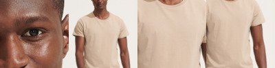 100% organic cotton.* 1x1 ribbed collar.Taped neck.Tubular body.Twin needle stitching.Unbranded size label at neckline.