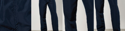 100% polyester. 50D microfibre. Showerproof and breathable. Quick drying. Elasticated waistband with inner drawcord. Breathable ventilation panels. Reflective branding on left leg.