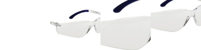 - Frameless spectacle with soft rubber temples and moulded brow guard.