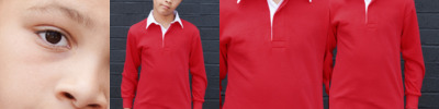 100% ringspun cotton single jersey. Traditional woven rugby collar with cotton webbing. Elastane ribbed cuffs. Side vents. Twin needle hem. For leisure use only.