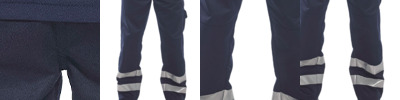 - Reflective bands at lower leg.