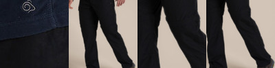 Convertible trousers with a water-resistant finish, featuring 9 pockets. Peached recycled polyester and recycled cotton with EcoShield DWR finish. 100% recycled zip tapes.
