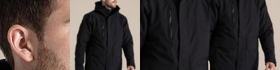 3-in-1 jacket. Waterproof and breathable shell outer with a softshell inner jacket. 10,000mm waterproof and 20,000g/ m2/ 24hrs breathable. Recycled polyester stretch mesh and recycled polyester taffeta lining outer. Recycled polyester elastane softshell with EcoShield DWR finish and striped microfleece back inner.