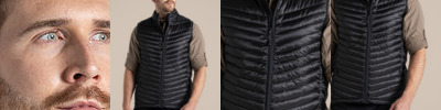 Water-resistant padded vest, with a full-length zip and 4 pockets, one of which doubles as a stow pocket. Recycled polyester mini ripstop with EcoShield DWR finish outer and lining. ThermoPro recycled polyester fill and recycled zip tapes. 4 pockets: 2 welted zipped lower, 1 concealed zipped inner and 1 passport RFID.
