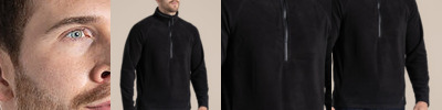 Half-zip microfleece. 100% recycled polyester microfleece. 100% recycled zip tapes.