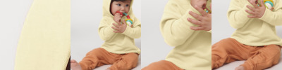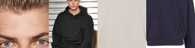 Set-in sleeve. Double-layered hood in single Jersey. Wider neck opening for easy dressing. Inside back neck tape in single Jersey. Self-fabric half-moon at back nec. Single needle topstitch at neckline and along hood opening. 1x1 rib at sleeve hem and bottom hem. Sleeve hem and bottom hem with twin-needle topstitch.