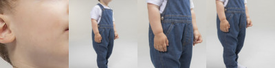 Kids dungarees with YKK poppers on straps, side seams and around inseam. Jean-style stitching on all seams and 2 rear patch pockets. Tag-free.