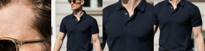 Stretch deluxe fitting. Tone-in-tone buttons. Three-button placket. Shirt collar stand. Combed organic cotton. Organic Content Standard 100 (OCS Certified, CU1038206).