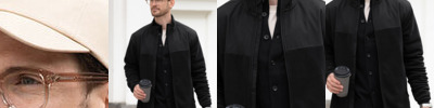 - Self fabric cuffs and banded bottom hem