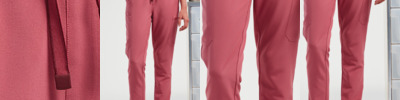 42% polyester/33% recycled polyester/19% viscose/6% elastane. Breathable four-way stretch fabric.Durable, crease resistant and easy care.Elasticated waistband with drawcord and mock fly.Two side pockets.Right thigh zip pocket.Two rear welt pockets.Ribbed cuffed leg ends.60°C wash.